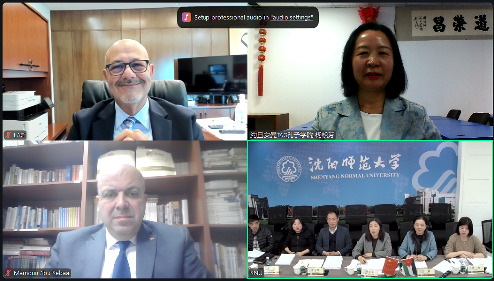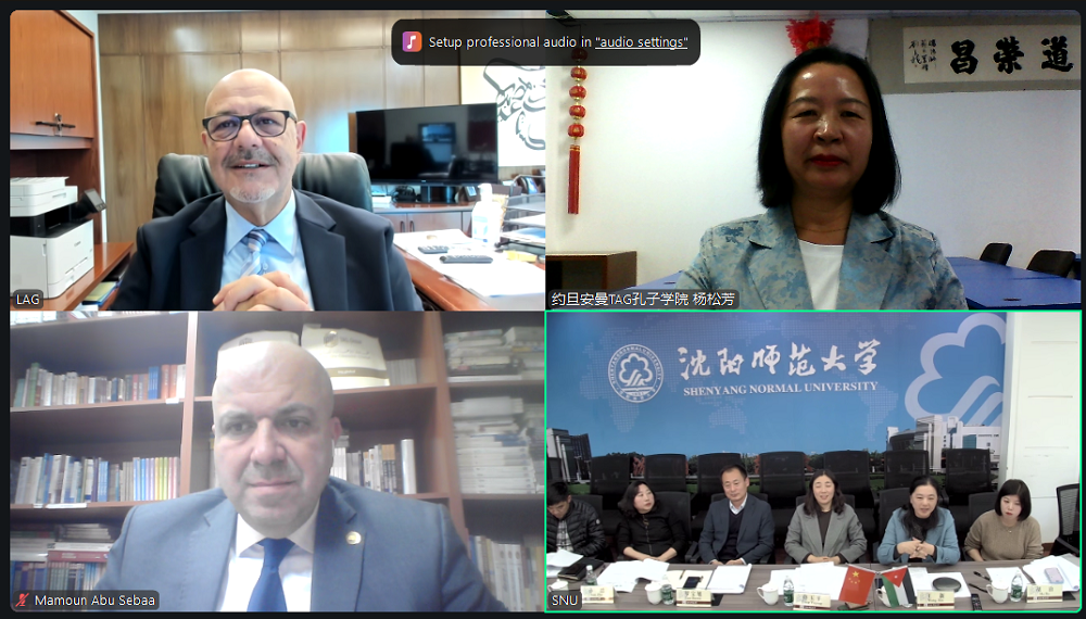 On November 3, the 17th Board Meeting of TAG-Confucius Institute (TAG-CI) was successfully convened. The meeting was attended by Mr. Luay Abu-Ghazaleh, Vice Chairman of Talal Abu-Ghazaleh Global (TAG.Global) and Jordanian President of the Board of TAG-CI, Mr. Mamoun Abu Al-Sebaa, Jordanian Director of TAG-CI; Dr. Tong Yuping, Vice President of Shenyang Normal University (SYNU) and Chinese President of the Board of TAG-CI, Mr. Luo Baoxu, Director of the Publicity Department, Ms. Wang Xin, Director of the Office of International Exchange and Cooperation, Ms. Hu Bo, Deputy Director of Office of International Exchange and Cooperation, and Dr. Yang Songfang, Chinese Director of TAG-CI.
