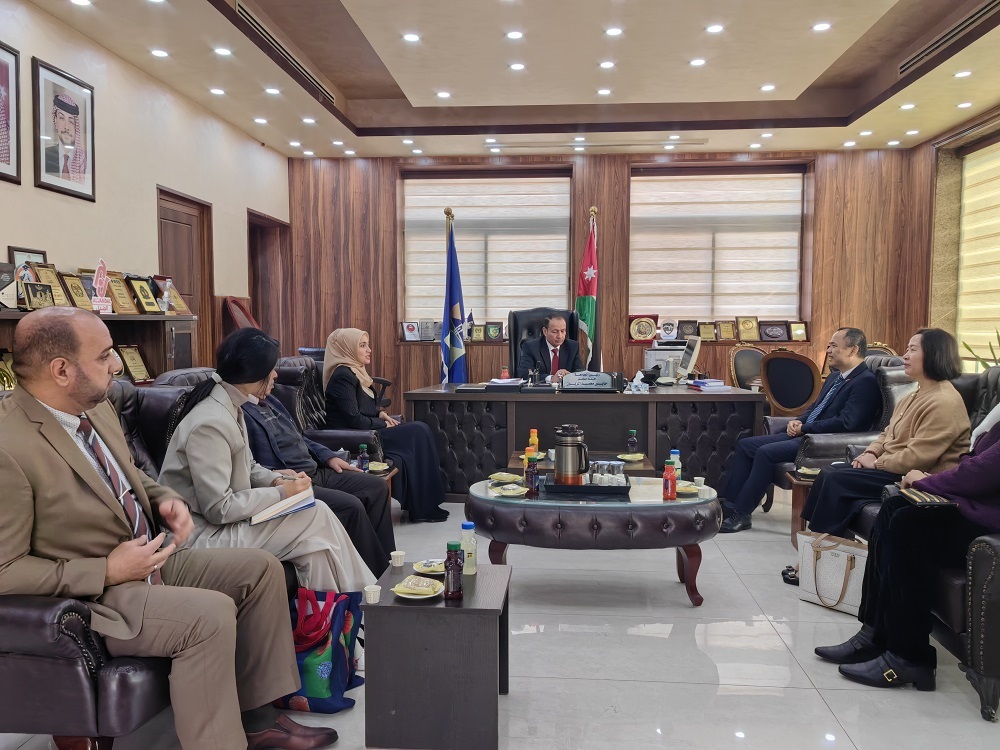 Dr. Shukri Marashdh, Chairman of the Board of Directors of Jadara University, and Dr. Habes Al-Zboon, President of the University, respectively extended a warm welcome to Mr. Zhao Xiaoqiang, Cultural Counsellor of the Chinese Embassy in Jordan and Director of CCCA, and Dr. Yang Songfang, Chinese Director of TAG-CI. The two sides held in-depth and friendly discussions on Chinese language education, cultural exchange and academic cooperation.